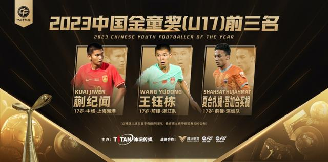 2023中国金童奖(U17)前三名:蒯纪闻、王钰栋、夏合扎提·吾加合买提