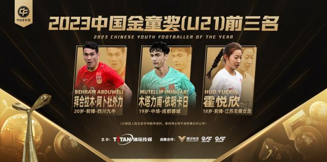 2023中国金童奖(U21)前三名:拜合拉木·阿卜杜外力、木塔力甫·依明卡日、霍悦欣