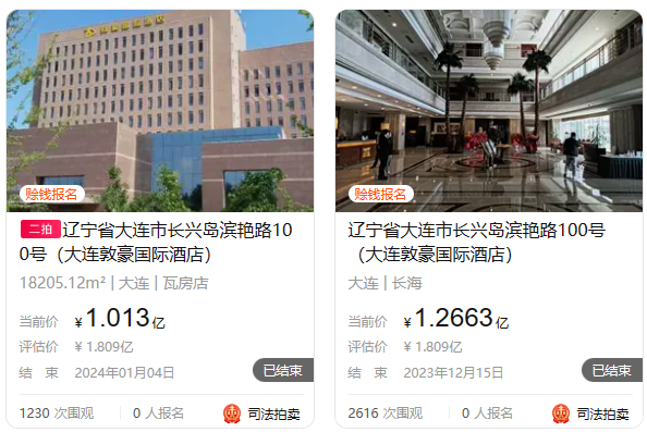 大连敦豪国际酒店,以1.01亿元的起拍价二次拍卖,拍卖开始时间为2023年1月3日;