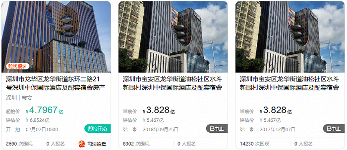 深圳中保国际酒店,以4.7967亿元的起拍价上架拍卖,拍卖开始时间为2024年2月2日。