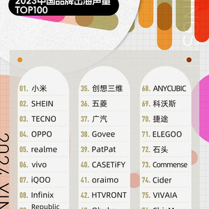 当地缘政治、气候变化、通货膨胀等全球化挑战接连发生,中国品牌却在全球化的征程中迈出了新的步伐。在这一宏观背景之下,第一财经商业数据中心(CBNData)首度发布2023中国品牌出海声量榜,基于OneSight营销云数据库中所覆盖的十余个行业大类、近万个中国出海品牌在Facebook、Instagram、X(原Twitter)等海外主流社交媒体的公开数据加权评分综合得出,发布1个年度声量总榜、5大品类声量榜,综合评定2023年中国品牌出海社交媒体影响力,大致描绘出中国品牌的出海图景。