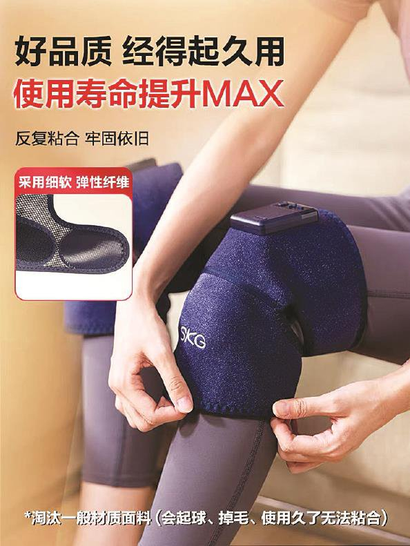 SKG膝盖按摩仪有按摩和加热的功能,其中7200转/分的高频振动按摩,加上2mm的击打振幅,能够模拟人手定点穴位养护,让震感直达酸胀深处,放松膝盖。它还有四档温度,从40℃到55℃,从夏季到寒冬都有舒适的温度,配合韵律进行热敷,3秒就能速暖,对膝盖形成热力环绕,快速缓解不适。