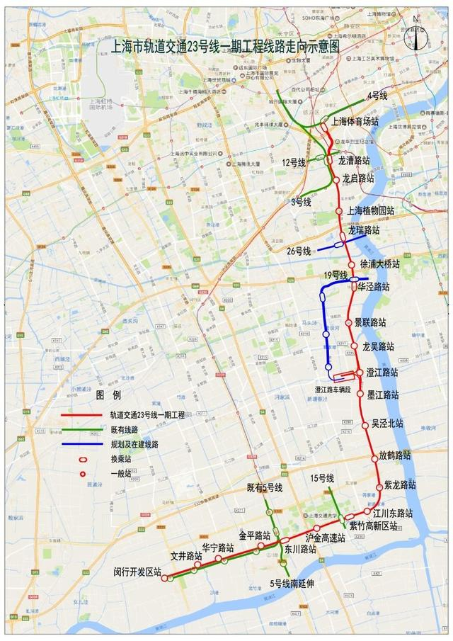 19号线计划2031年底建成。闵行共设3座车站(虹建路站、景联路站和华泾西站)和1个车辆基地(澄江路,与23号线共址)。