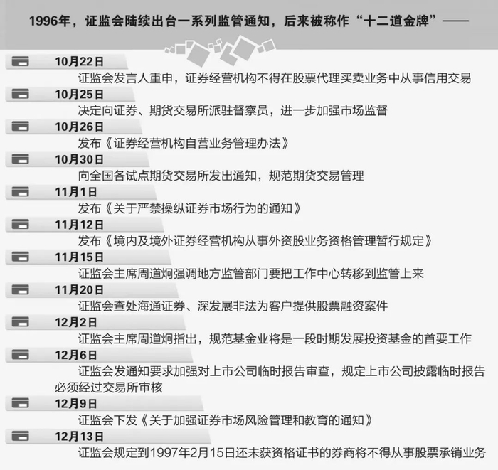 市场陷入极度狂热中,违规行为不断。证监会陆续出台一系列监管通知,后来被称作“十二道金牌”。
