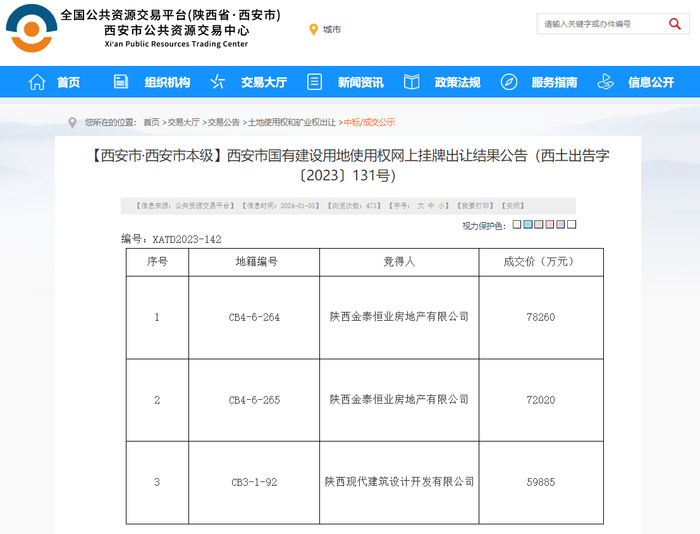中国质量新闻网讯 日前,西安市公共资源交易中心披露,浐灞生态区3宗共204.791亩居住用地,全部以底价成交,成交总价21.0165亿元!其中,陕西金泰恒业房地产有限公司摘得2宗共144.597亩住宅用地;陕西现代建筑设计开发有限公司摘得1宗60.194亩商住用地。