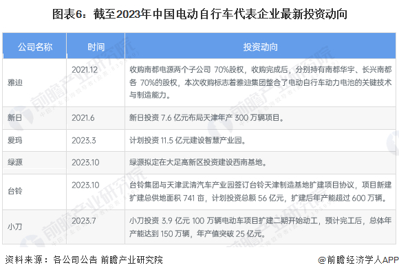 从电动自行车代表性企业的最新投资动向来看,多数电动自行车的投资动向主要为直接对扩产、扩建项目进行投资,而雅迪的投资方向主要聚焦在对产业链进行更加纵深的探索。从投资总额来看,近期投资事件中,台铃投资金额规模最大,高达56亿元。