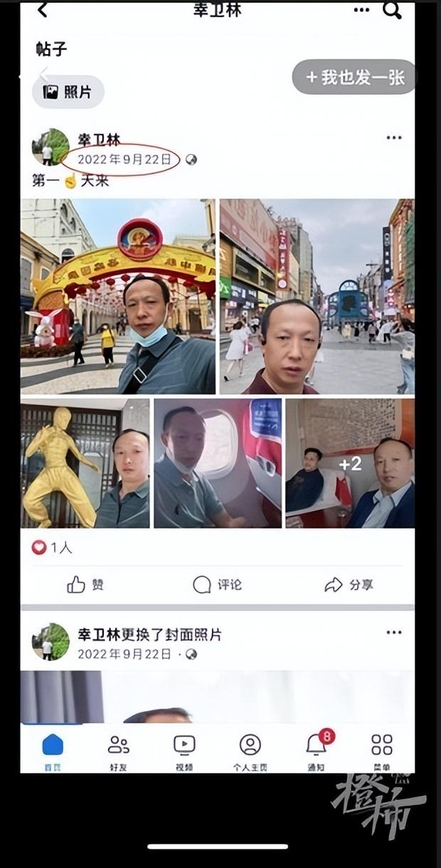 读者指出:在海外社交媒体(FaceBook)上看到一个叫“幸卫林”的博主在9月22日上传了照片。这一账号注册地信息显示在泰国曼谷,照片显示也是幸卫林本人。