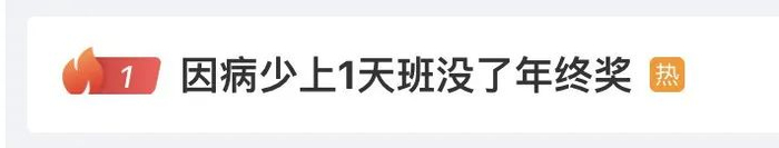 近日,“因病少上1天班没了年终奖”话题在网上引发热议。2022年12月,彭女士身体不适,希望公司能安排人手接替,让自己休息几天。几次协商后,公司未安排其调休,彭女士于当年12月29日,也即全年工作日的倒数第二天,从公司离职。