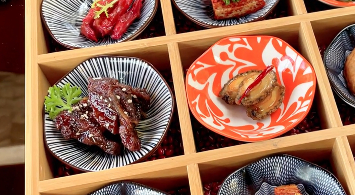 新鲜肥美的鲍鱼在酒店特制的油卤汁熬煮入味后,油光水亮的鲍鱼入口q弹,清鲜浓醇!酥脆麻辣的手撕辣牛肉,辣味浓郁,鲜香过瘾。糖油果子色泽鲜亮诱人,外皮酥脆焦香,配上浓香的白芝麻,好吃到一秒回到童年!
