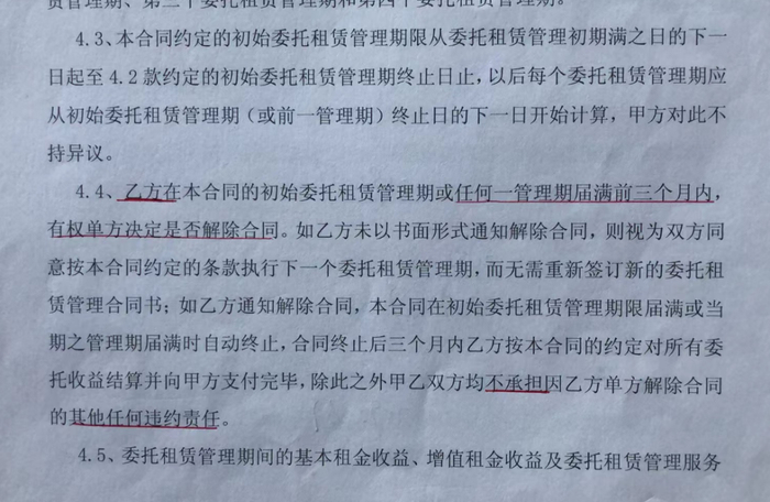 罗先生表示,这也意味着每个管理期结束,他们都可以单方面不履约,然后让业主改签新的协议。