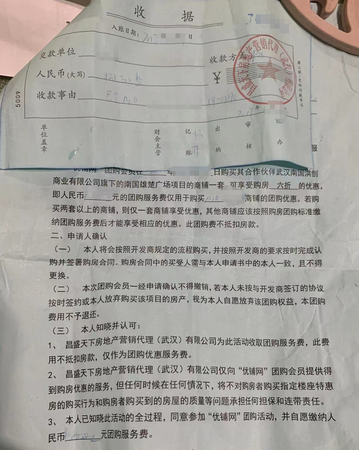 “我购买的项目当时销售得非常火爆,相对周边价格高不少。”罗先生指着几份收据告诉记者,由于卖得好,一些业主甚至交了1.2万~14万元不等的所谓“团购费”才买到。