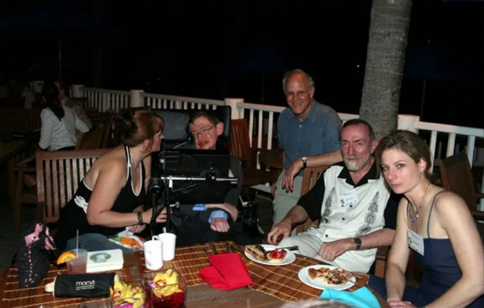 当年仍然健在的霍金,卷入爱泼斯坦丑闻,正是因为这张照片:轮椅上的他,坐在夜空下,围着一张摆着食物的饭桌,跟几个疑似是宾客的男女在聊天。