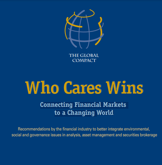 ESG,是Environmental, social, and corporate governance(环境、社会和公司治理)的首字母缩写,首创ESG这一词语的是联合国在2004年发表的一份报告:《有心者胜:将金融市场与变化的世界连结起来》(Who cares wins——Connecting Financial Markets to a changing world。