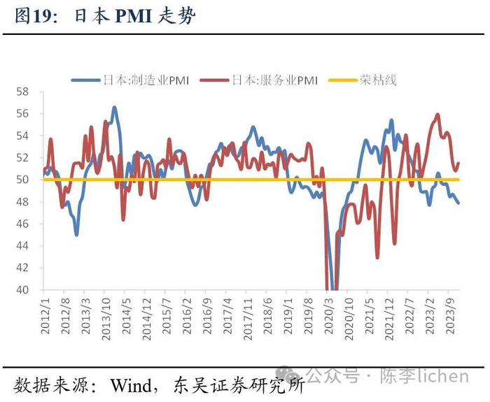 此外,陈李表示,2023年日本PMI有所回落。截至12月,日本制造业PMI已经连续6个月低于荣枯线。未来,日本出口能否继续回升?还需进一步观察。