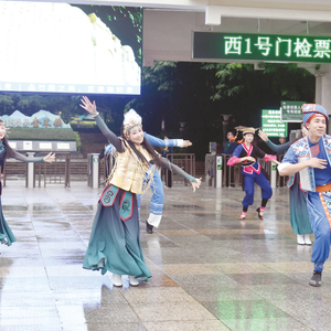 当天,南宁、抚远两市在青秀山风景区进行互动演出。能歌善舞的抚远赫哲族演员与身着民族服饰的南宁演员一起跳起了“科目三”,喜庆欢快的舞蹈将现场气氛推向高潮,这是跨越40℃+温差的文旅交流。
