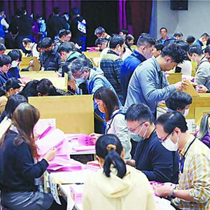 图片说明:台湾地区领导人选举13日举行,台北市信义区的投开票所主管主监12日进行选票点领。(中时新闻网)