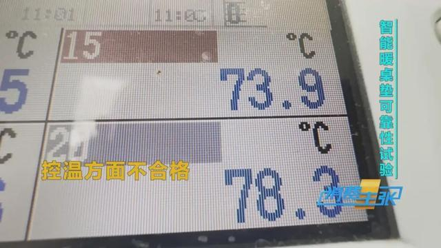 从试验结果来看,暖手桌垫表面温度已经超过了75摄氏度,工程师介绍,从标准意义上看,它已经是个不合格的产品。