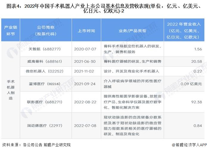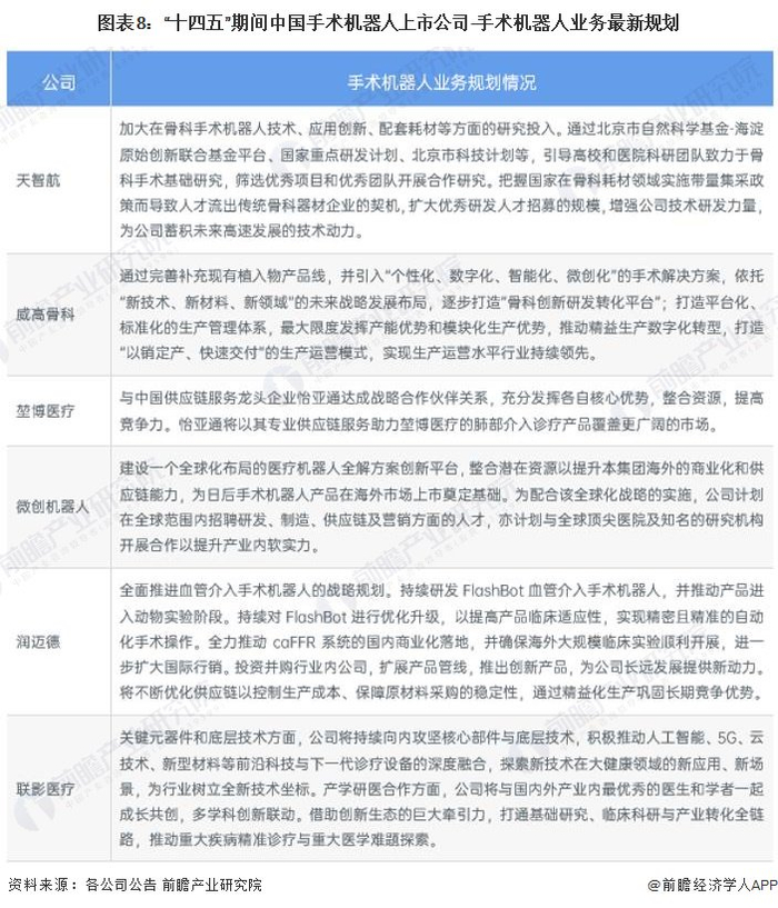 4、手术机器人行业上市公司手术机器人业务规划对比