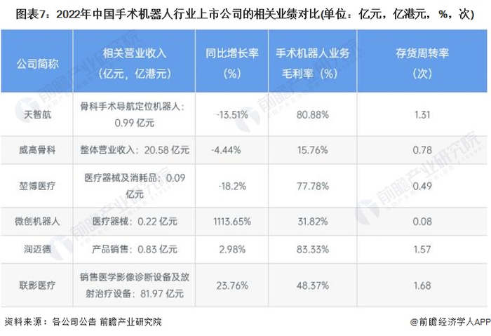 3、手术机器人行业上市公司手术机器人业务业绩对比