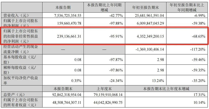 据财报数据显示,2023年第三季度,赣锋锂业实现营业收入75.4亿元,同比大幅下降42.77%;归母净利润为2.39亿元,同比大幅下滑95.91%。产品毛利率已降至4.94%。