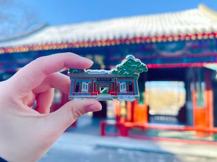 另一款冰箱贴“名亭·陶然亭”,在设计上融入冰雪与名亭建筑元素,同时嵌有松柏常青植物,散落的积雪增添了冬季韵味,通过精心的3D金属铸造和烤漆上色工艺,让闻名遐迩的中国四大名亭之一的陶然亭愈加多彩精致,熠熠生辉。