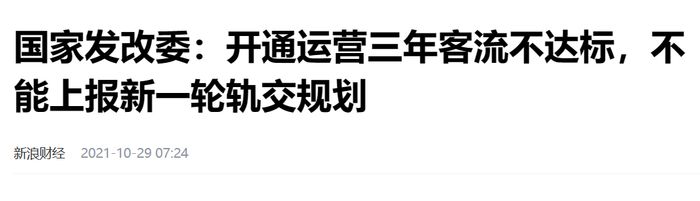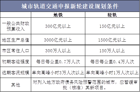 在此之前,有关部门就进一步细化城轨审批条件,不受理不具备条件的城市和一般地级市的首轮建设规划,开通运营三年后客流不达标的,不能上报新一轮建设规划。