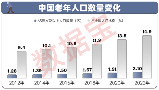 民政部2023年底发布的《2022年民政事业发展统计公报》显示,截至2022年底,我国60岁及以上人口28004万人,占全国人口的19.8%;其中65岁及以上人口20978万人,占全国人口的14.9%。
