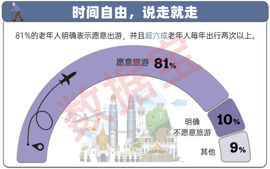 国元证券发布的研报显示,随着可支配收入逐步提高与消费观念的转变,老龄化群体更愿意参与旅游休闲活动。数据显示,81%的老年人明确表示愿意出游,并且64%的老年人每年出行两次以上。