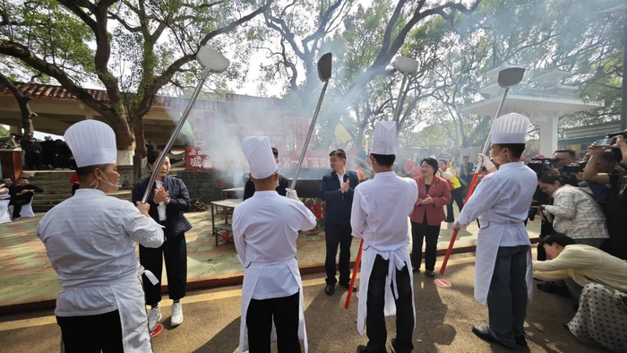 在本次活动中,五星级粤菜大厨高飞大师接过由龙门村委递付的“菠萝龙勺”,寓意着“粤菜大师”将肩负传承弘扬粤菜文化、推进粤菜创新发展。