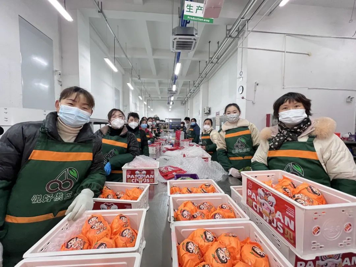 到了下午,除了客服外,老何和团队剩下的20余人都开始打包发货。当天的单子当天发,用最快的物流。打包是个大工程,老何在箱内铺好海绵垫,又围了层隔温袋子,外层的泡沫箱子是根据车厘子的大小特别定制的。考虑到年货节临近,老何特意和工厂嘱咐,包装箱的辅料要多赶些,又委托加制一批春节礼品袋,用来回馈粉丝。