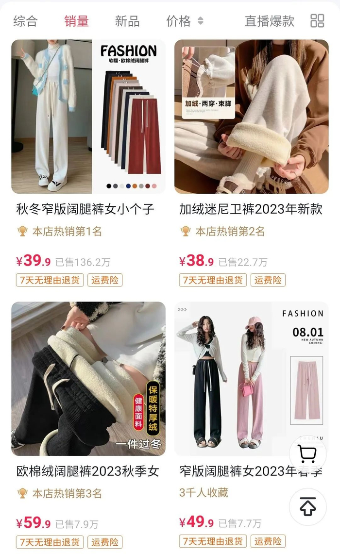 有了之前的经验积累,今年年货节吴伟早早就开始筹备。“9月份,在秋季刚来的时候,我已经做好这次产品的定位跟布局了。”针对年货节,他增加了主打裤单品的款式和颜色,又扩充了搭配的上衣样式。“同样一个用户进来,他原来只买我一条裤子,现在可以买我两条裤子,一件衣服——整体的连带率还有GPM可以得到上涨。”