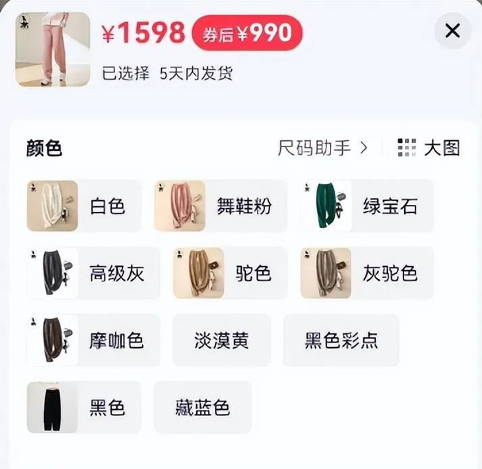 比如,藏里羊的一款香蕉裤,在去年“成功打爆”后,李建红后续突破性地增加至11种颜色,这款单品在商城货架上长尾效应明显。