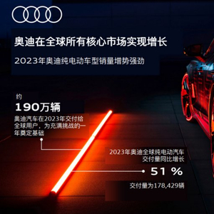 纯电动车增长51% 中国销量占比近4成 奥迪2023全球交付约190万辆
