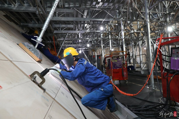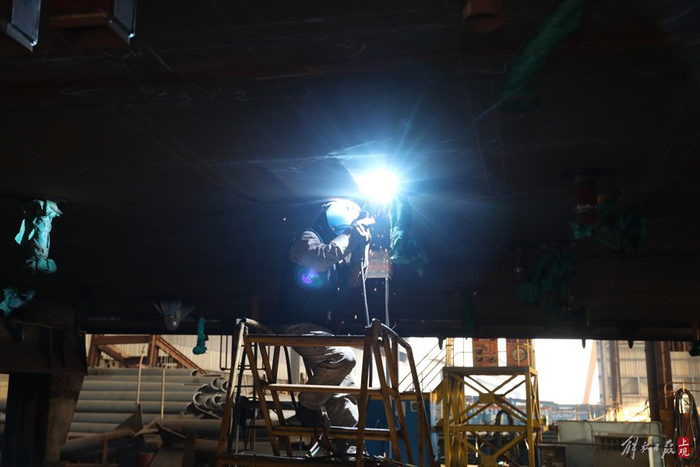 对船底部分段进行焊接。本报记者 孟雨涵 摄