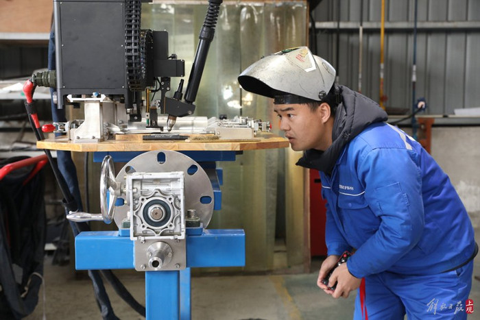 沪东中华造船厂培训中心,43岁的张冬伟在调试智能焊接设备。作为焊接领域全国技术能手,他获得“大国工匠”及全国五一劳动奖章等殊荣,如今主要工作是培养更多高技能焊接人才。