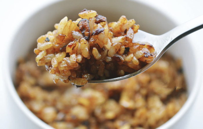 半碗米饭加上2勺冈田酱油,一勺耗油,搅拌均匀,再倒入锅中翻炒,出锅以后,好吃到舔盘。