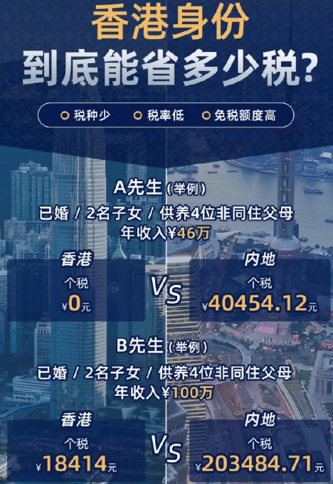 在香港,即使税务居民收入几千万,最高税率都不超过15%。