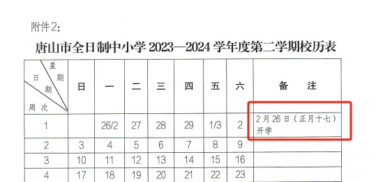 唐山在2023年发布的校历中