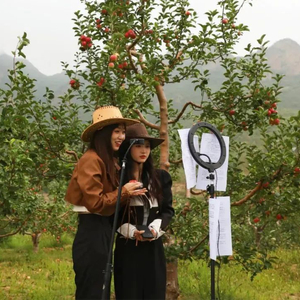 围场满族蒙古族自治县电商中心抖音直播间的主播详细介绍围场四道沟乡特产“金红苹果”。图片来源:围场融媒微信公众号