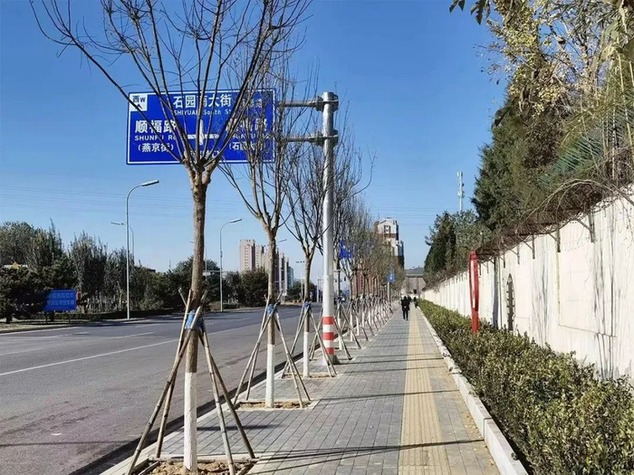 在石园南大街(顺康路—顺宁路)道路两侧建设人行步道,为周边居民出行提供安全保障。
