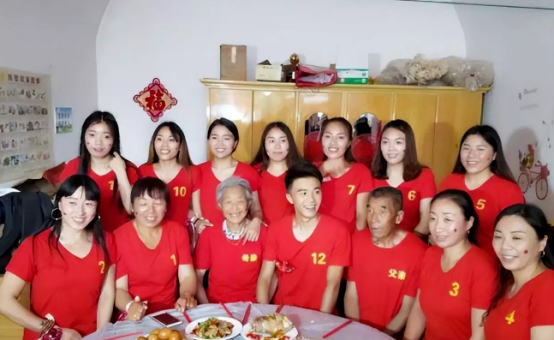 大婚之日。清晨,11个姐姐已换上了精心准备的婚礼T恤,排排站在新郎房门前,蔚为壮观。