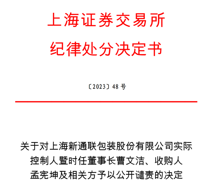 经过调查,2023年5月5日,上交所对曹文洁、孟宪坤、裘方圆等三人予以公开谴责。