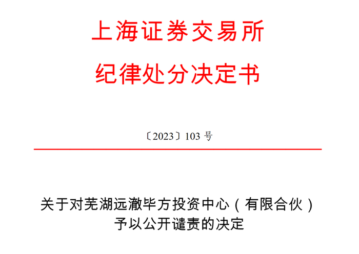 2023年8月16日,上交所的一份纪律处分决定书揭开了毕方投资“涉嫌持股变动相关违法违规”的一角。