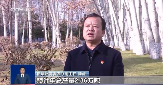 伊犁州党委农办副主任 杨虎:伊犁州直属渔业养殖面积2.06万亩,预计年总产量2.36万吨,其中以三文鱼为主的冷水鱼产量达6700吨。