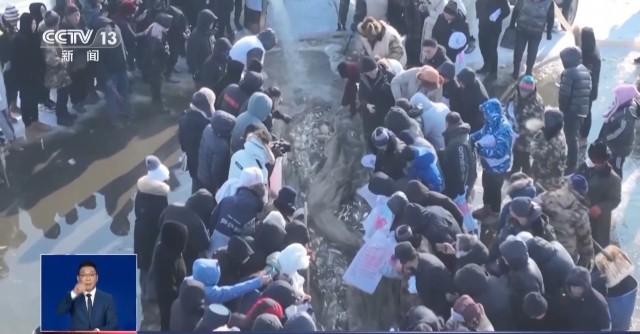 而在小兴安岭,这两天来自全国各地的上百名游客,齐聚铁力市桃源湖畔,观赏难得一见的鄂伦春族人冬季捕鱼盛况。在冰封的湖面上,伴着欢快的音乐和震耳的鞭炮声,身穿鄂伦春民族节日盛装的人们载歌载舞,以传统的冬捕活动喜庆丰年,依托“特色冷水鱼+鄂伦春文化”,打造文旅新亮点。