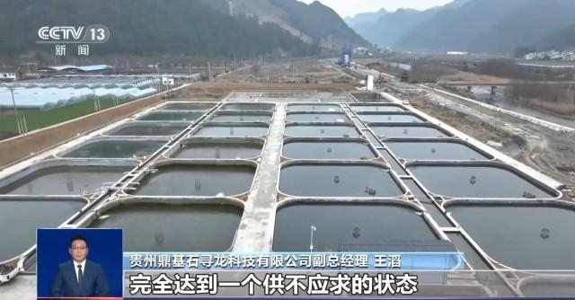 贵州鼎基石寻龙科技有限公司副总经理 王滔:今年市场很好,比去年的价格翻了一倍,完全达到供不应求的状态,有很多客人会在这里等上一个礼拜,就等着我们的鱼。