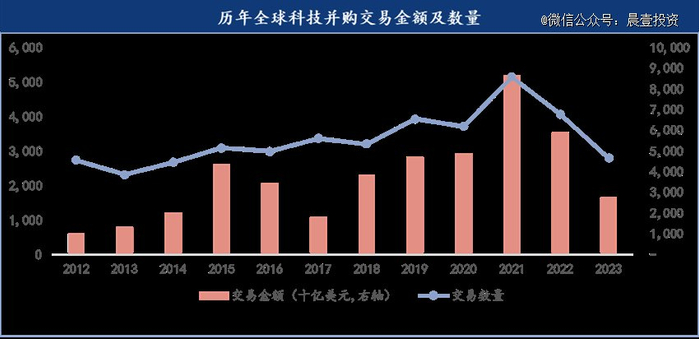 预计未来一段时间大型产业整合活动会持续受到抑制,但科技产业的特性决定科技并购自驱性活跃,大交易的束缚或许会刺激更多的中小型交易发生。