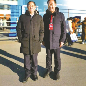 高玉峰与教育部基础教育物理教学指导委员会副主任委员、秘书长李春密教授合影