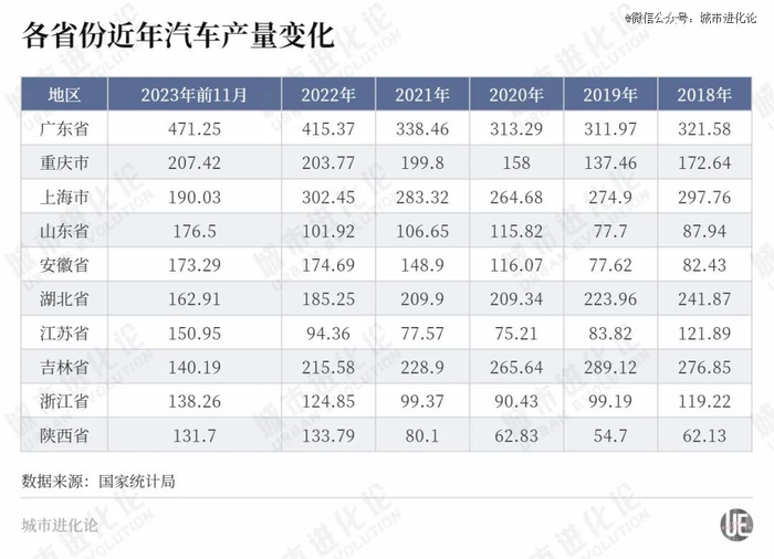 国家统计局数据显示,2018年山东汽车产量为87.94万辆,至2023年前11个月攀升至176.5万辆,不到6年增幅已超100%,排名也从全国第12位跃升至第4位。