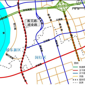 蘅芜路-浦业路是城市主干路,是联系浦东新区、闵行区的南北向干道,银都路隧道越江交通的主要集散道路,分流南北高架-浦星公路交通,服务沿滨江地区到发交通,以服务客运交通为主。